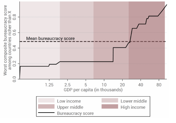 Gráfico 1: Menor índice de capacidade burocrática registrado para os países em cada nível de PIB per capita