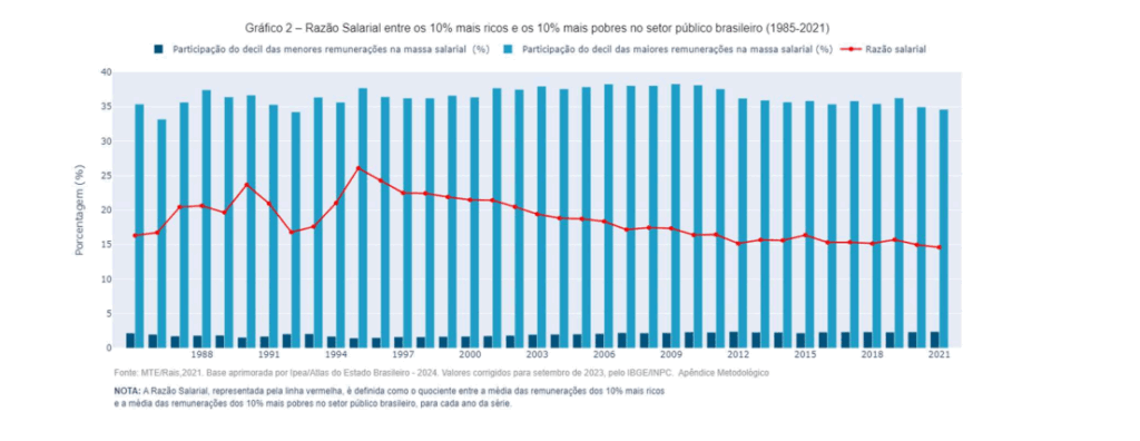 ARAÚJO, Marcson. Análises Atlas do Estado Brasileiro. Ipea, outubro de 2024. Disponível em: https://www.ipea.gov.br/atlasestado/arquivos/rmd/7486-adebanalisediadoservidor.html. Acesso em 21/10/2025