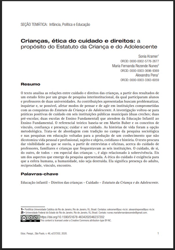 Baixar arquivo: Artigo | Crianças, ética do cuidado e direitos: a propósito do Estatuto da Criança e do Adolescente